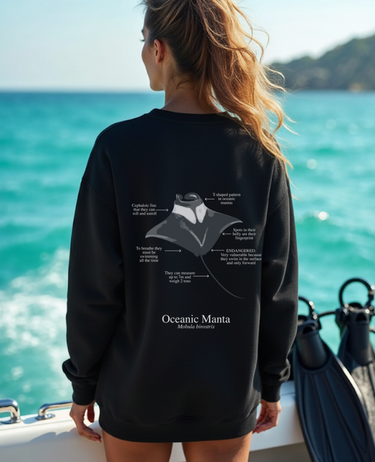 La manta oceánica es una de las criaturas más espectaculares del océano. Puede alcanzar hasta 7 metros de ancho y su inteligencia y curiosidad natural a menudo la llevan a interactuar con buceadores, creando encuentros inolvidables.
